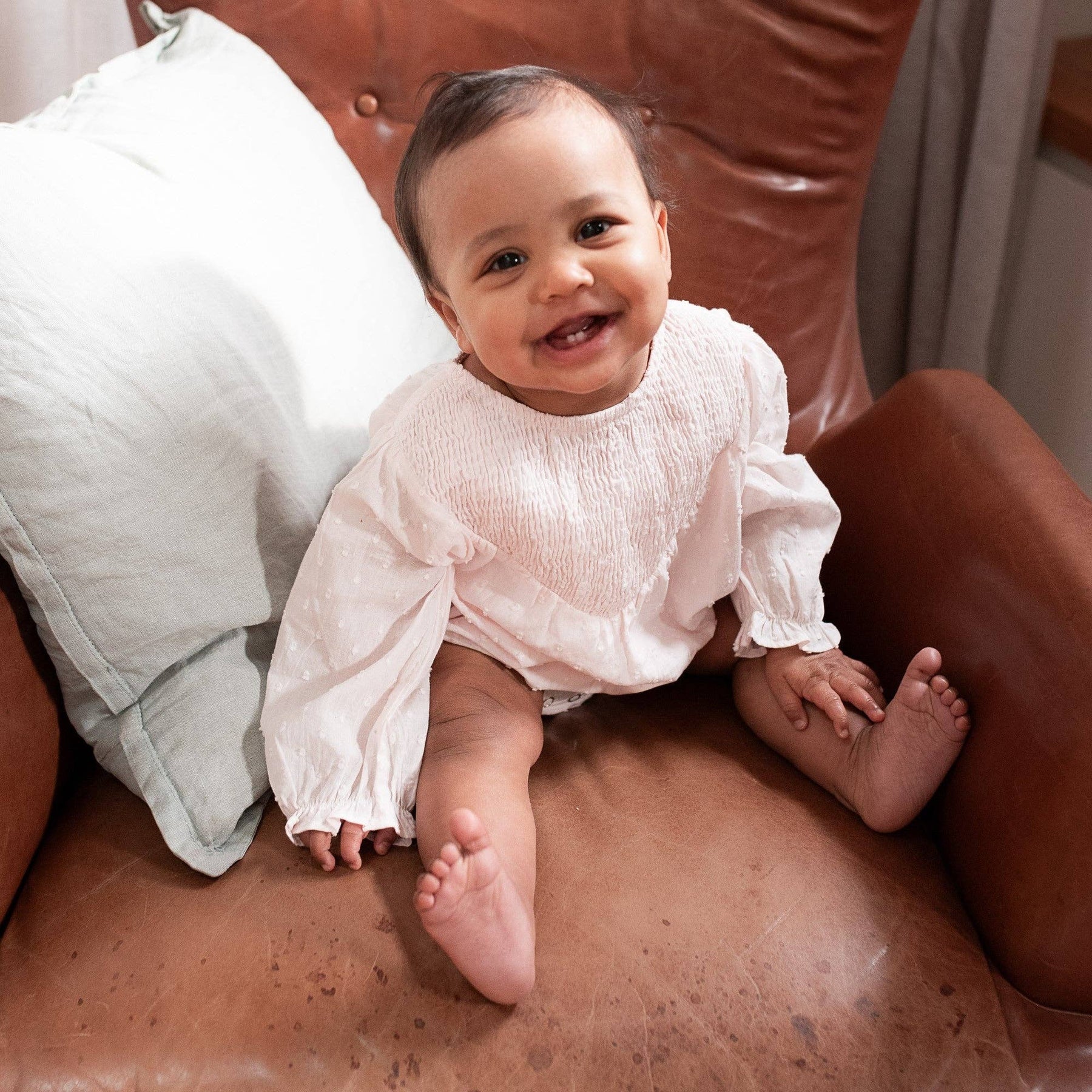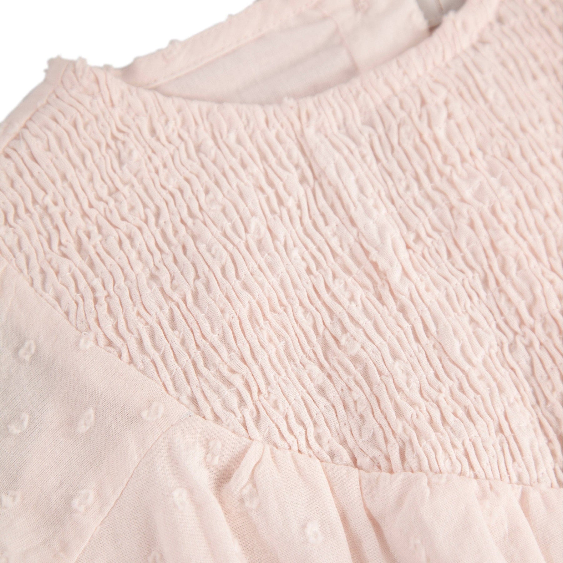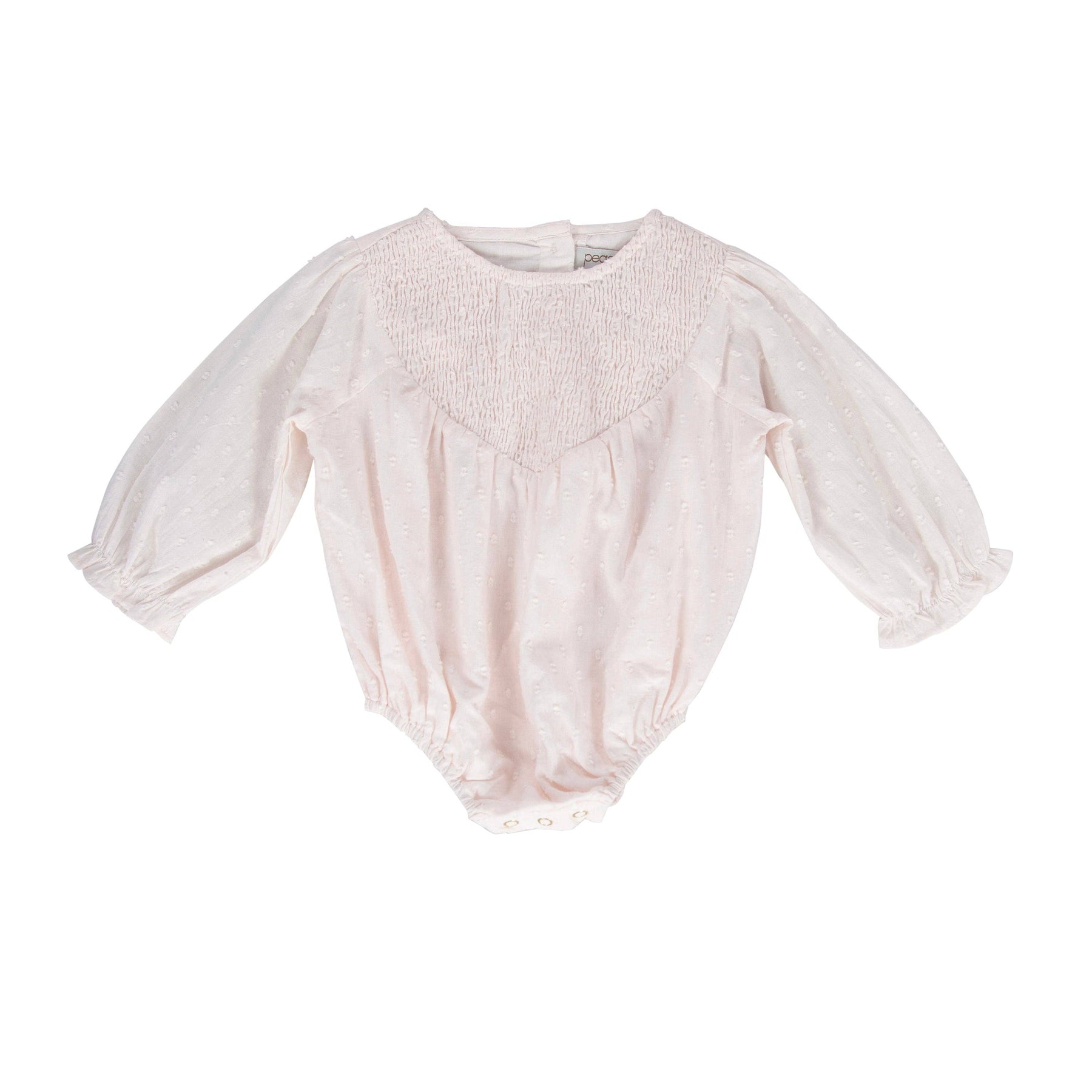 Lined cotton doby "square" design Strawberry Milkshake romper, with smocked detail in a "V" at front.