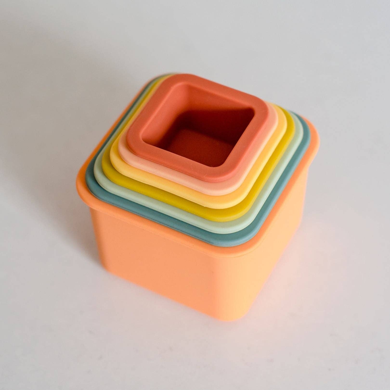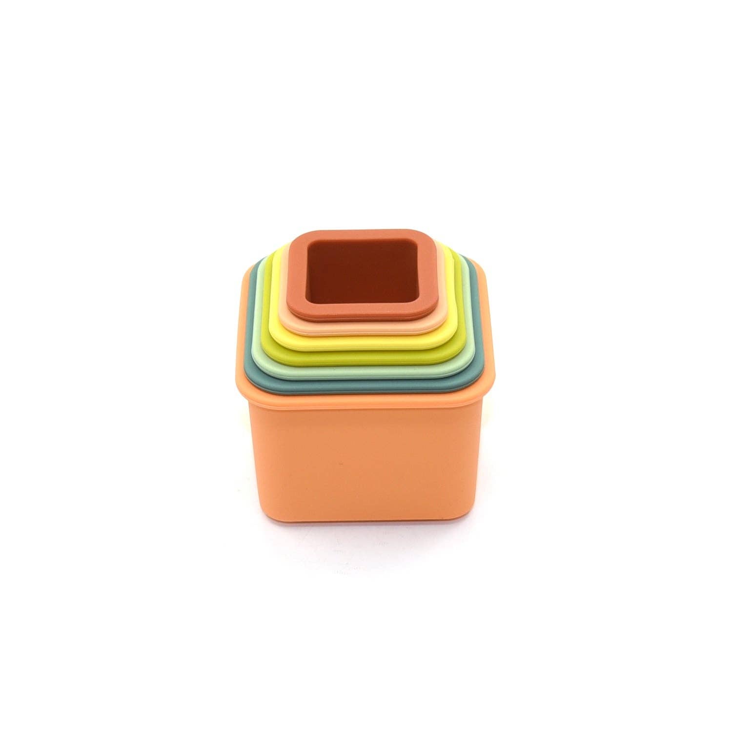 Our Square Silicone Stacking Cups are an open-ended toy designed to unleash creativity and imagination in your child. This versatile toy will encourage hand-eye coordination, creative thinking, and problem-solving skills. They will help improve dexterity and motor development. Made from Food Grade Silicone, our Round Stacking Cups are perfect for indoor and outdoor use. DETAILS AND SPECIFICATIONS: * Suitable for ages 8m+ * Includes 7 stacking cups * Made ethically by a BSCI audited manufacturer * Materials: 100% Food Grade Silicone, non-toxic and BPA free * Dimensions: 11 x 9 x 4 cm CARE INSTRUCTIONS: Clean with warm soapy water and air dry.