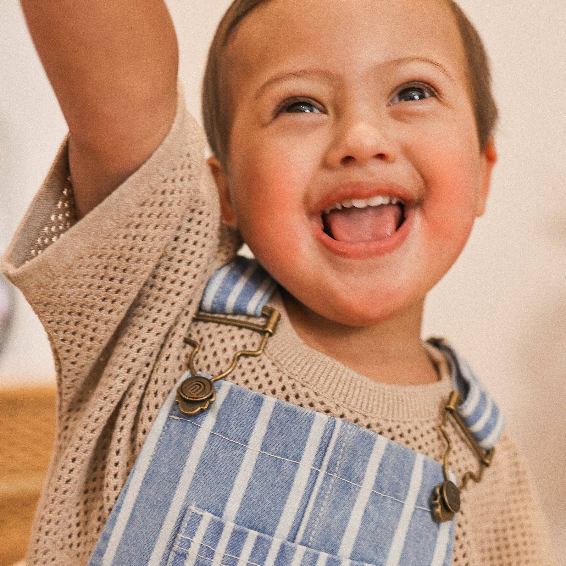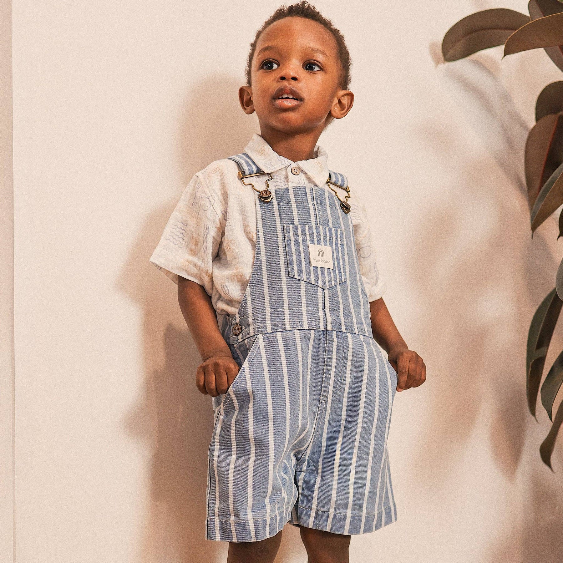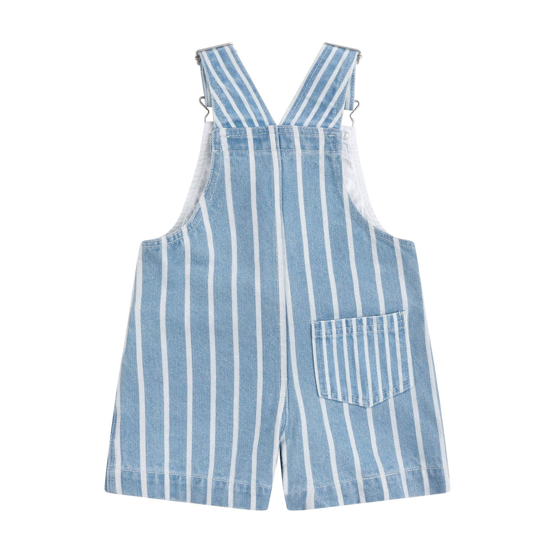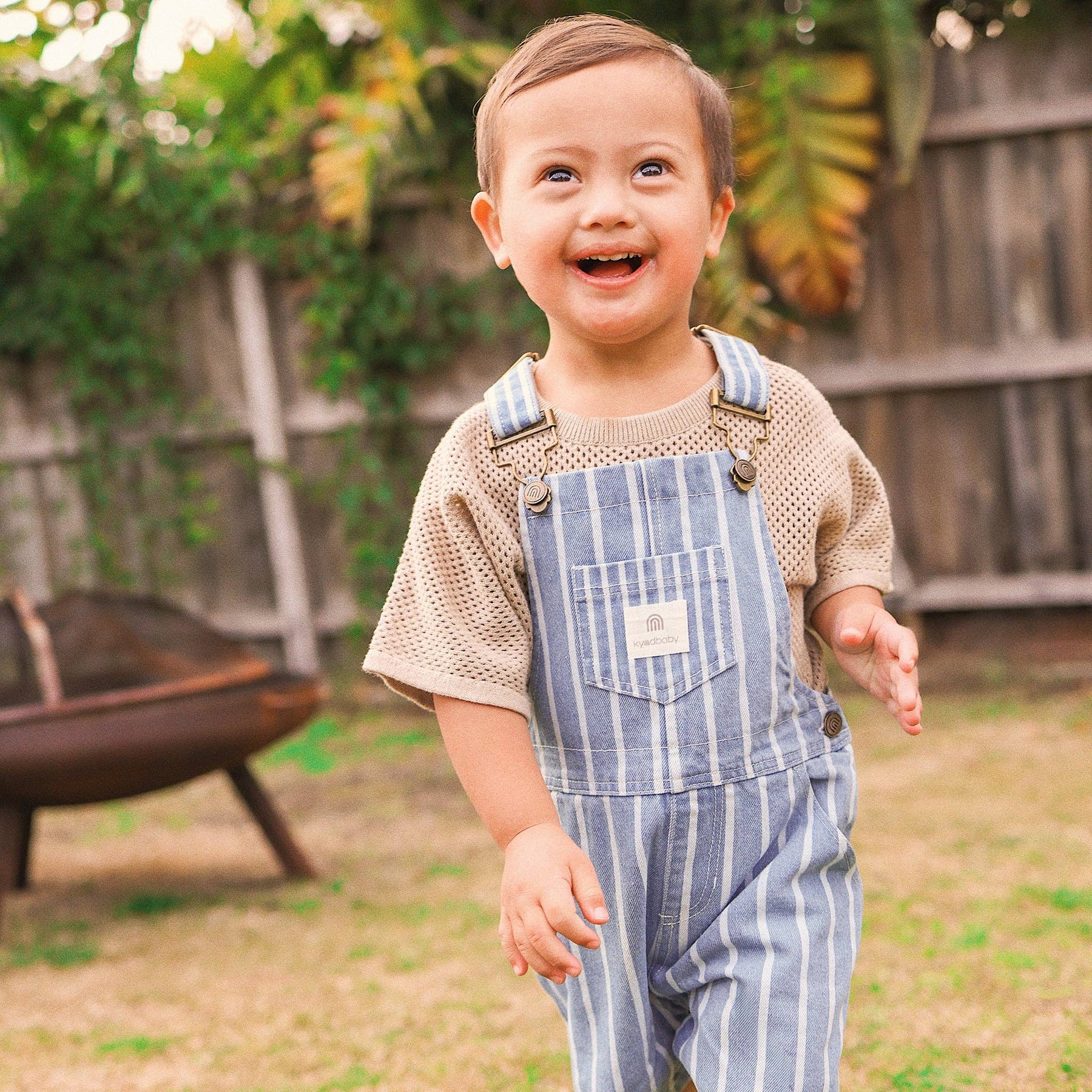 Our Striped Woven Overall is made from 100% cotton in a soft, denim-blue and white stripe. Light, airy, and breathable, it’s perfect for warm-weather play. Silver snap buttons and hardware add a vintage touch, while easy closures and a relaxed fit make it just right for everyday comfort - dress it up or down with ease!